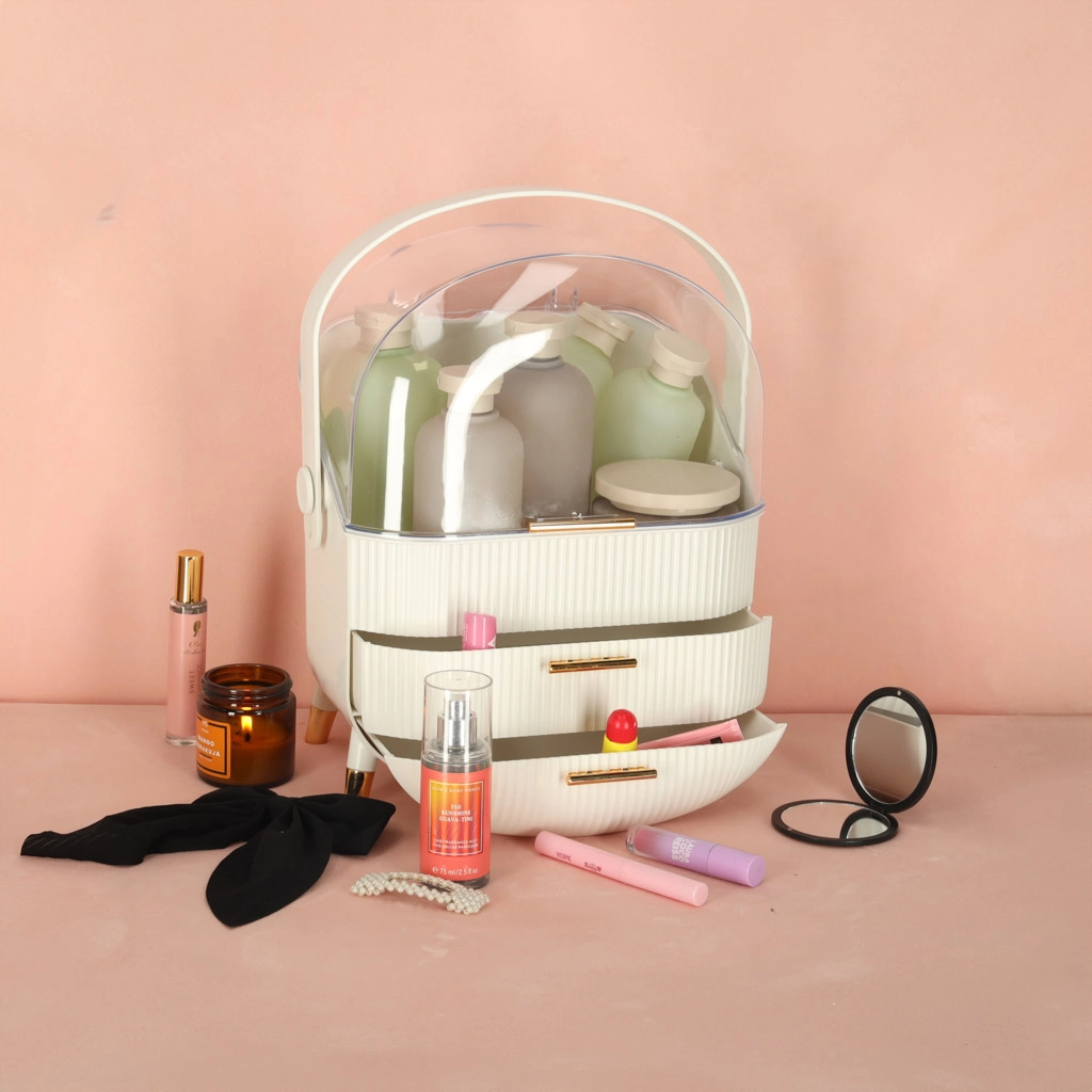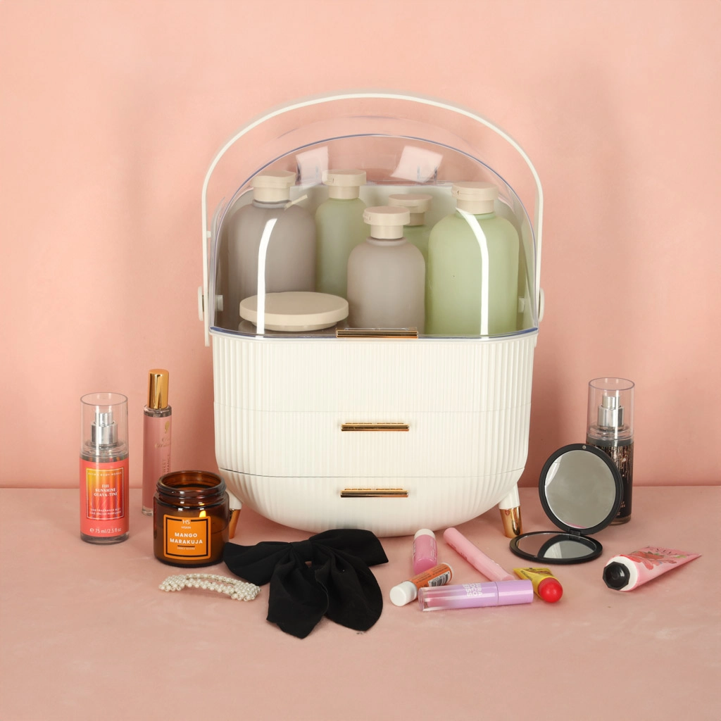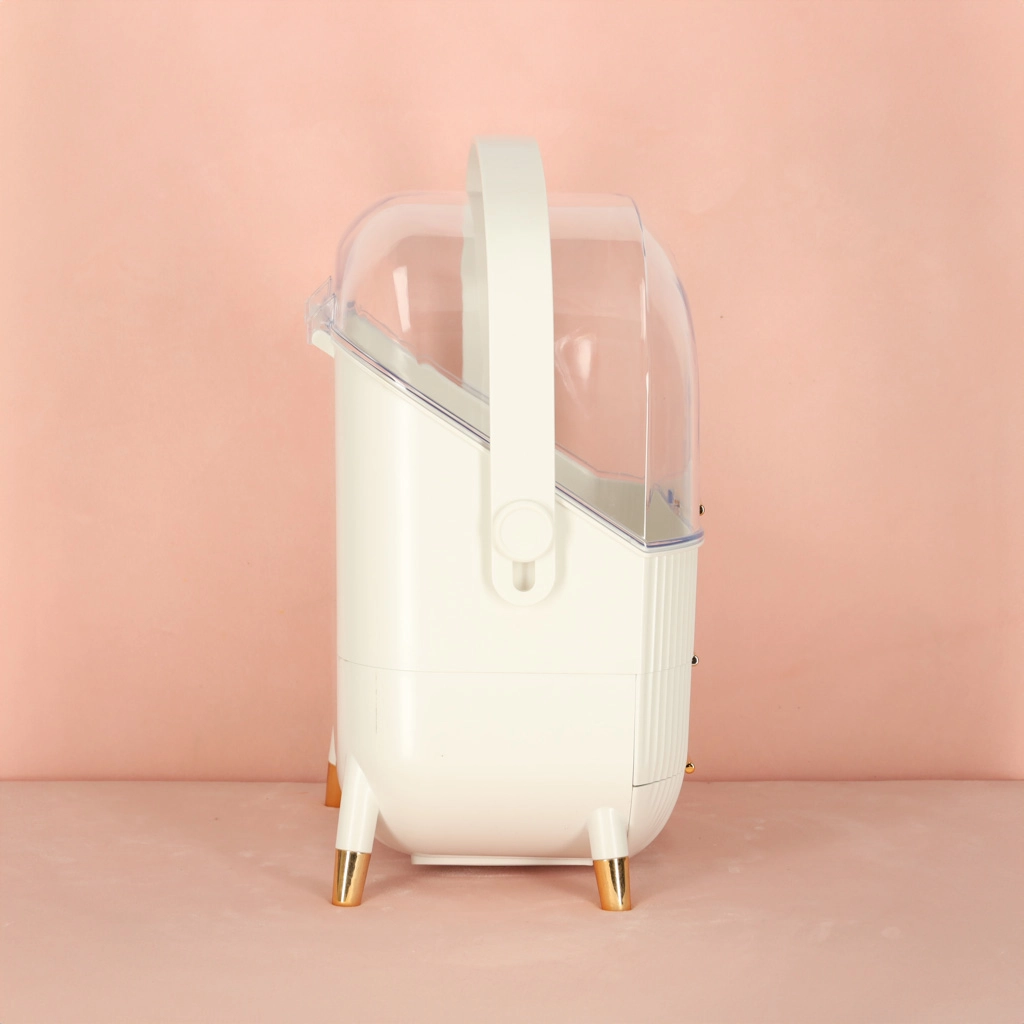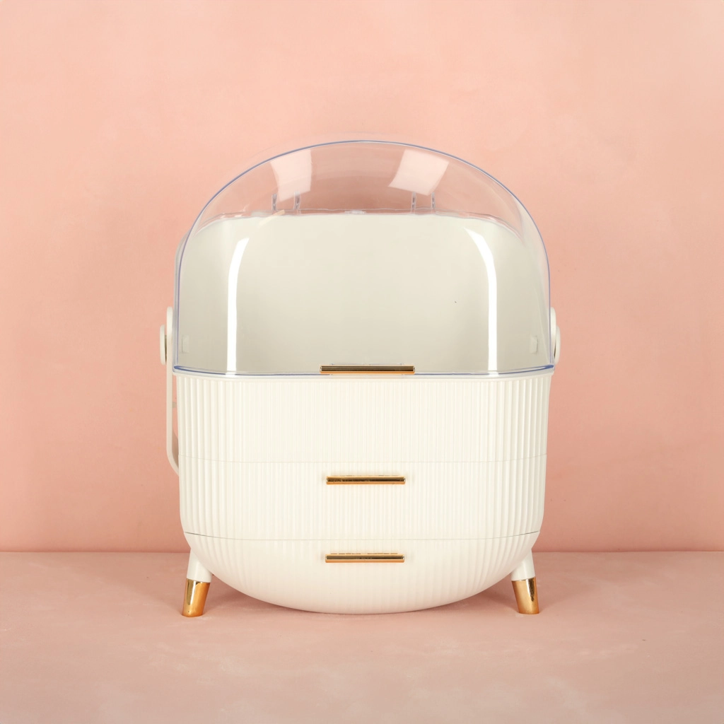 Le couvercle transparent expose vos produits cosmétiques dans un style élégant tout en les protégeant de la poussière. Les subtils détails dorés ajoutent une touche de luxe.