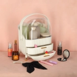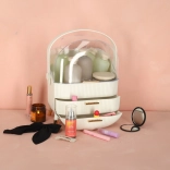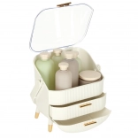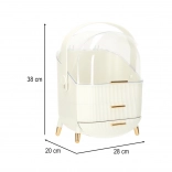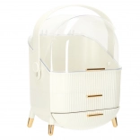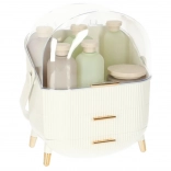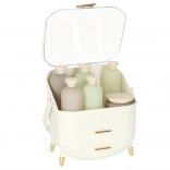 Nous vous présentons l'organisateur cosmétique blanc avec tiroirs, qui vous aidera à garder vos produits cosmétiques et bijoux parfaitement ordonnés. Cet organisateur est doté de deux tiroirs spacieux et d'un couvercle transparent, qui protègent vos affaires de la poussière tout en les exposant joliment. La forme élégante de cet organisateur avec ses détails dorés donne à chaque salle de bains ou coiffeuse une apparence luxueuse.