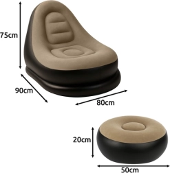 Résistant et durable, ce fauteuil gonflable est fabriqué avec une couche solide de PVC à surface agréable imitant le velours. Ses valves modernes empêchent la fuite rapide de l'air. Un choix idéal pour ceux qui recherchent un fauteuil durable pour le salon, la chambre ou le jardin.