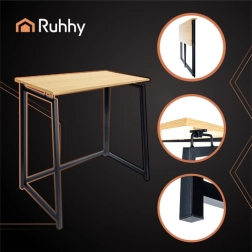 Le bureau pliant RUHHY au style industriel allie gain de place, pliage/dépliage en quelques secondes et structure métallique stable avec décor bois. Idéal pour le home office, les études et les petits appartements.