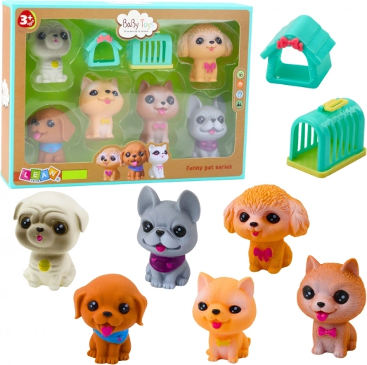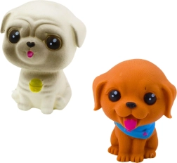 Chaque figurine est faite de caoutchouc doux et sûr, avec un aspect joliment détaillé. Détails réalistes, minois adorables et grands yeux rendent ces chiens mignons au premier regard. En appuyant dessus, ils émettent un sifflement caractéristique, rappelant les sons de vrais chiots.