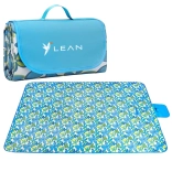La couverture est disponible en deux motifs attrayants – fleurs bleues et rayures bleu‑vert. La couche inférieure est imperméable, idéale pour le parc, la plage ou un festival. La poignée intégrée et le scratch assurent un pliage rapide et un transport confortable.