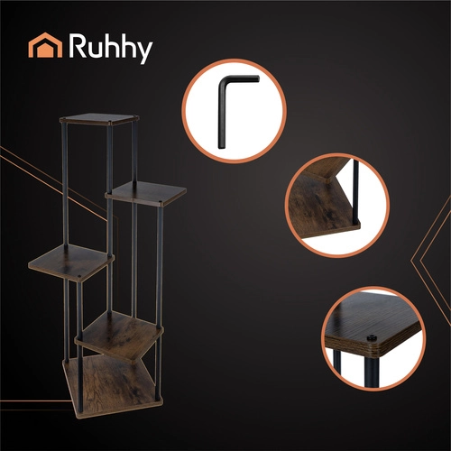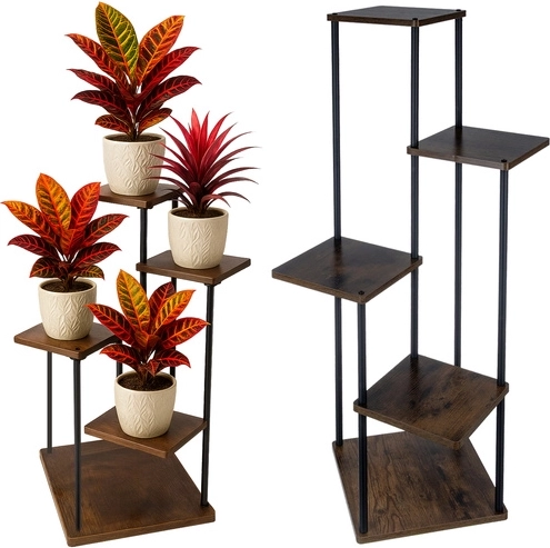 Le support de fleurs RUHHY apporte fonctionnalité et style à votre maison. Grâce à sa construction à 5 niveaux, vous pouvez dédier un espace aux plantes dans un espace réduit avec un design moderne comportant une structure métallique et des étagères en bois. Le cadre métallique solide peut supporter jusqu'à 75 kg, garantissant la stabilité et la durabilité du support. Il est équipé de pieds de protection pour la sécurité du sol, évitant les rayures et permettant l'alignement du support.