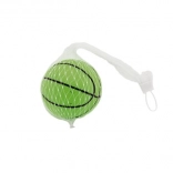 Balle en caoutchouc amusante avec motif de basket, diamètre 8,5 cm, pour enfants dès 3 ans. Offre un rebond excellent, une prise en main agréable et est disponible en assortiment de couleurs vives. Emballage pratique en filet pour un transport facile.