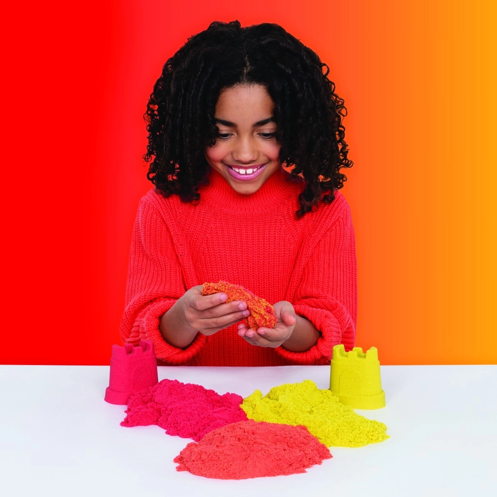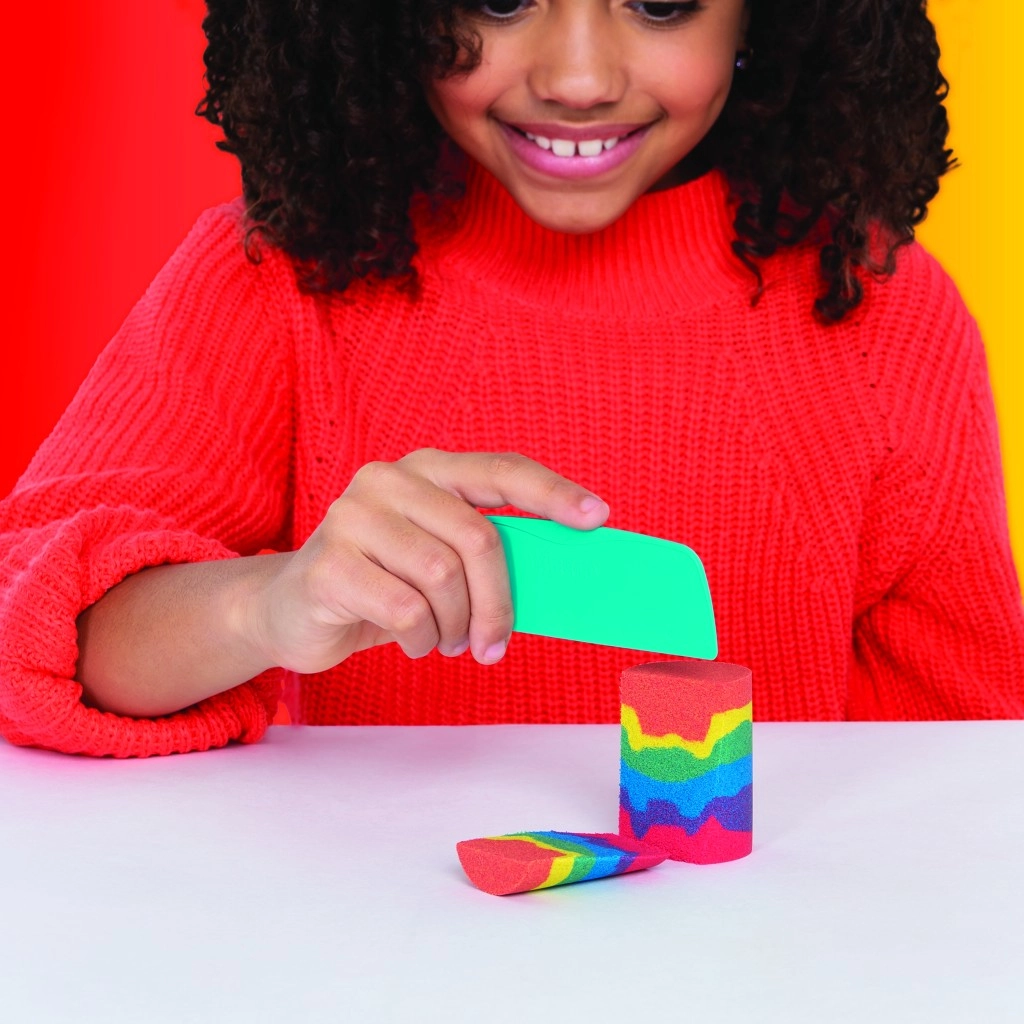 Ce kit combine l’iconique sable Kinetic Sand avec des outils pratiques pour couper, mélanger et modeler. Créez des arcs‑en‑ciel réalistes, superposez les couleurs et construisez des châteaux multicolores – le sable garde sa forme, ne colle pas et est agréable au toucher.