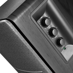 Avec ces haut‑parleurs, profitez d’une expérience sonore qui combine parfaitement une qualité classique et une technologie avancée. Personnalisez le son grâce aux molettes de réglage des basses, des aigus et du volume. Une télécommande pratique est également incluse pour un contrôle confortable. Ajustez les aigus et les basses selon vos besoins dans une plage de -6 à +6 dB.