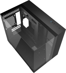 Le boîtier élégant Darkflash TH285M fournit une vue unique grâce à ses trois panneaux transparents en verre trempé, améliorant l'esthétique et permettant un contrôle facile des composants. Le soutien des cartes mères format M-ATX et ITX offre flexibilité pour la construction du PC.