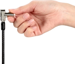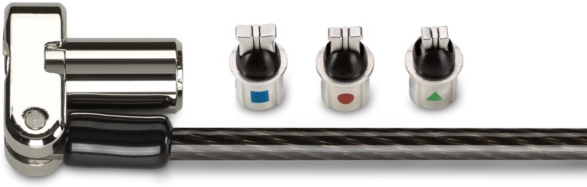 Le verrou universel 3‑en‑1 permet l’utilisation avec n’importe quel slot de sécurité d’ordinateur portable, qu’il soit standard, nano ou à coin. Le remplacement facile des embouts de verrouillage assure une solution conviviale, et la sangle fournie garde les embouts inutilisés à portée de main.