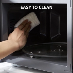 Découvrez un four à micro-ondes au design moderne, à la fois esthétique et très fonctionnel. Avec une capacité accueillant un plateau tournant de 255 mm, il est idéal pour les foyers de toute taille.