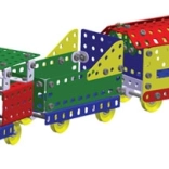 Créez votre propre chemin de fer avec la boîte de construction Merkur Cross Express ! Ce kit métallique permet d’assembler simultanément une locomotive, un tender et une voiture voyageurs.