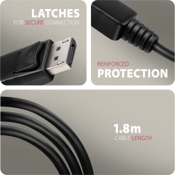 - Câble de 1,8 m offrant une grande flexibilité d’installation.