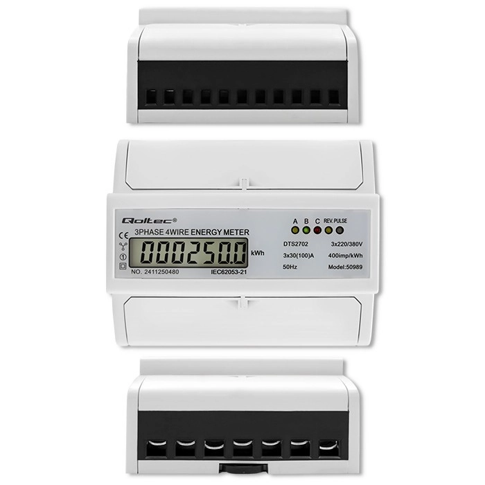 Le compteur d’électricité électronique triphasé bidirectionnel de la marque Qoltec est conçu pour un suivi efficace de la consommation d’énergie avec une utilisation simple. Ses dimensions compactes et son installation aisée en font un choix idéal tant pour les applications domestiques qu’industrielles. L’écran LCD fournit des données de consommation précises, facilitant la gestion efficace des coûts énergétiques.