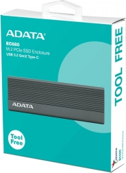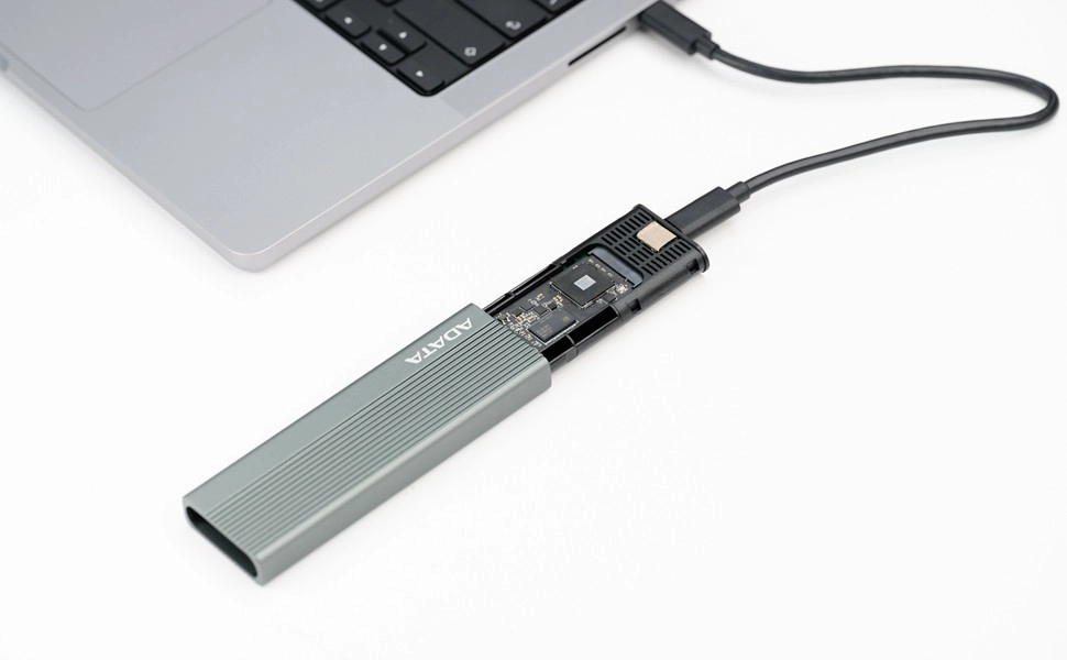 Le boîtier externe ADATA EC680 transforme votre ancien disque M.2 PCIe en un SSD externe pratique. Grâce à l’interface USB 3.2 Gen2 et au port Type‑C, il transfère les données jusqu’à 10 Gbit/s.