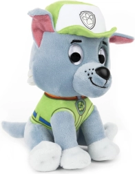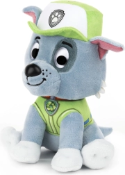La figurine en peluche de Rocky présente ses détails caractéristiques : gilet vert, casquette avec badge et expression amicale. Sa surface douce invite aux câlins toute la journée et assure des couchers paisibles le soir. Un excellent cadeau pour tout enfant qui aime la PAT’ PATROUILLE.