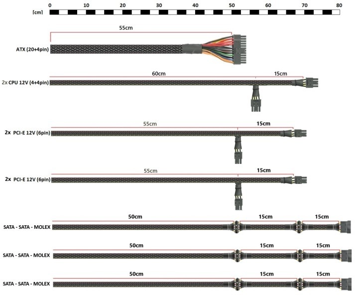 Un ventilateur de 12 cm intégré avec roulements hydrauliques assure une longue durée de vie et un fonctionnement silencieux. Le boîtier est équipé de câbles plats non modulaires FLAT BLACK pour une installation facile.