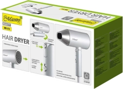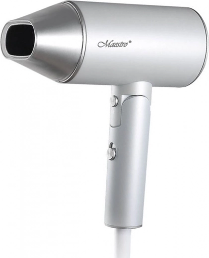 Le sèche-cheveux de voyage Maestro avec une puissance de 2100 W et un moteur DC offre une grande efficacité et un fonctionnement silencieux. Il est équipé d’un concentrateur à double paroi pour un coiffage précis et d’une poignée pliable pour un rangement et un transport faciles. Deux niveaux de vitesse du flux d’air et la fonction air froid permettent d’adapter les réglages à vos besoins. Le couvercle du filtre amovible facilite l’entretien et le nettoyage. Le long câble d’alimentation de 1,75 m offre une grande liberté de mouvement lors du séchage. Les dimensions du sèche-cheveux sont de 24 x 17 x 7,5 cm, ce qui en fait un équipement de voyage pratique et fonctionnel.