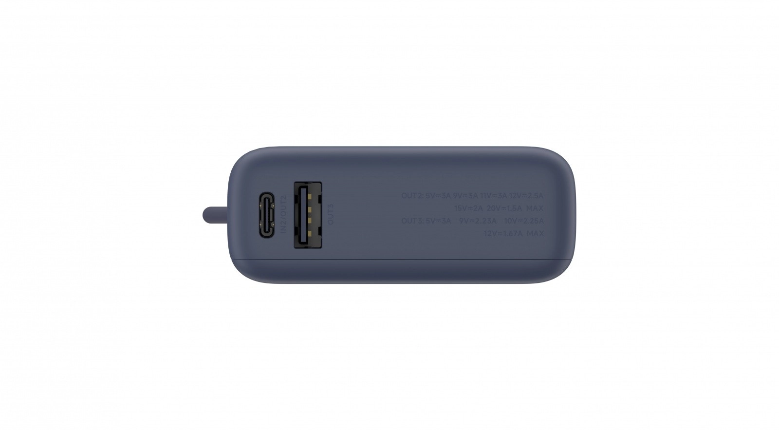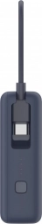 La batterie externe dispose de trois sorties : un port USB‑C, un câble USB‑C intégré et un port USB‑A. Cela permet de charger simultanément jusqu’à trois appareils sans perte de puissance. Le câble intégré augmente le confort et évite d’emporter des câbles supplémentaires.