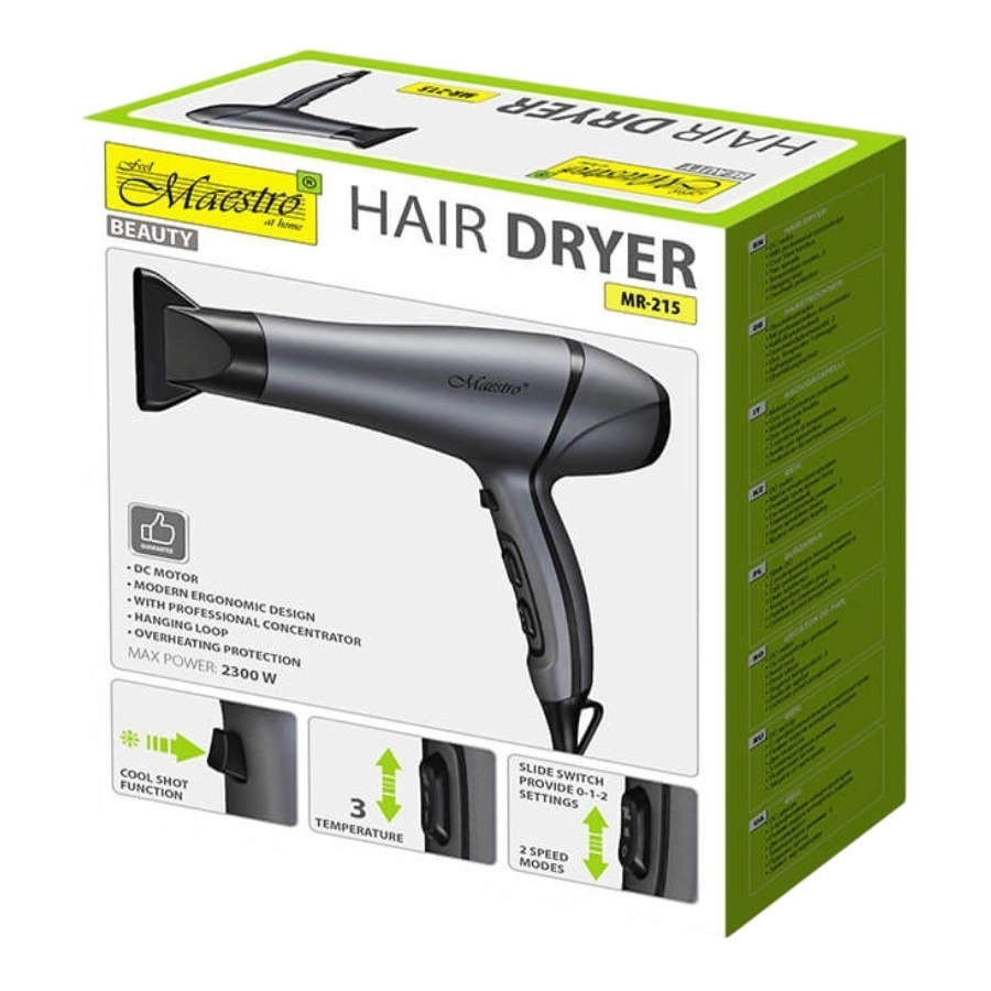 Les dimensions du sèche-cheveux 28 x 24 x 8 cm rendent l’appareil facile à manipuler. Un choix fiable pour tous ceux qui apprécient la haute qualité et la fonctionnalité.