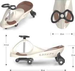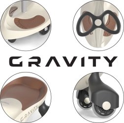 La Gravity est fabriquée dans un matériau de qualité, garantissant légèreté et durabilité. Son design ergonomique et sa selle profilée offrent un confort maximal pendant la conduite. La base stable et le centre de gravité bas augmentent la sécurité d’utilisation. Le volant, facile à saisir pour les petites mains, est équipé de roues à LED lumineuses qui rendent la draisienne encore plus attrayante.