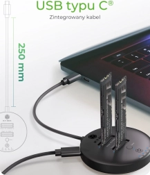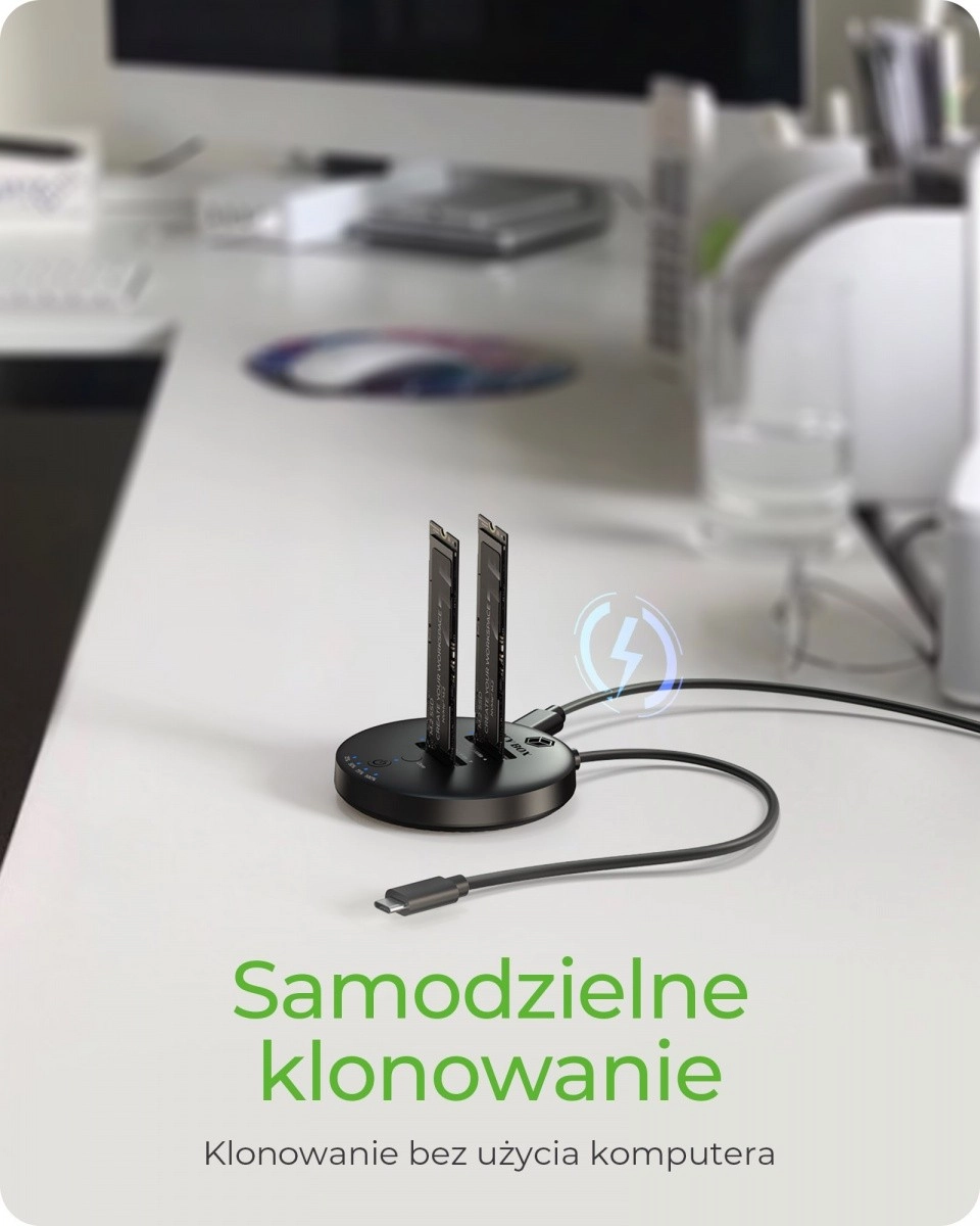 Cette station fonctionne comme une station d’accueil pour deux SSD M.2 NVMe lorsqu’elle est connectée à un ordinateur via le câble USB-C intégré. Elle offre un transfert de données rapide entre les deux disques et prend en charge une grande capacité de stockage ainsi que la sauvegarde du système en temps réel.