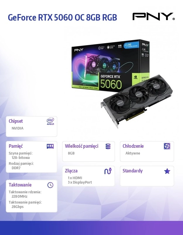 La carte graphique PNY GeForce RTX 5060 vous impressionnera par son architecture NVIDIA Blackwell améliorée, offrant un niveau de performance et d’efficacité sans précédent. Elle est idéale pour les titres de jeux exigeants avec un nombre d’images par seconde élevé.