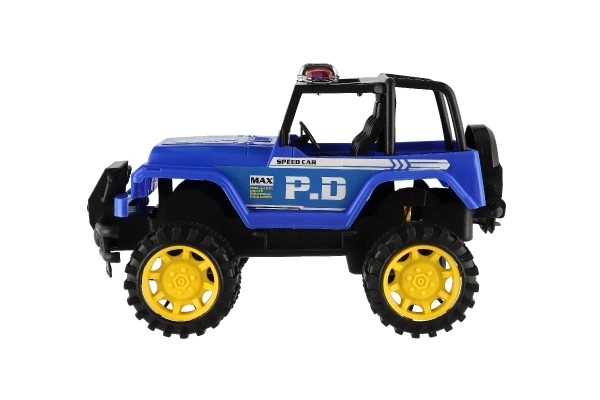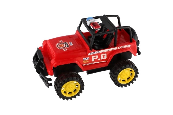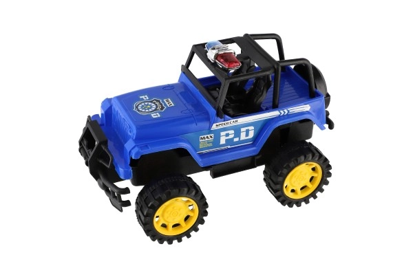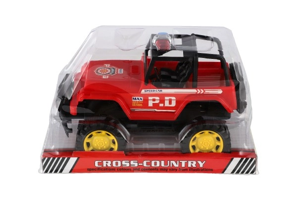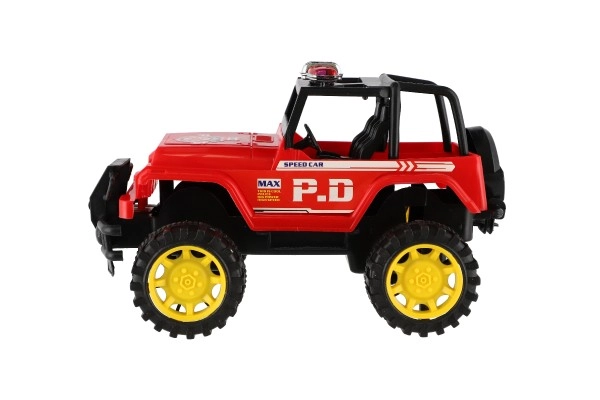 Le design off-road robuste avec châssis haut et grandes roues assure une tenue sûre sur le « terrain » de la chambre d’enfant comme au jardin. Le look police avec inscriptions visibles favorise le jeu de rôles et stimule l’imagination. Grâce au mécanisme à inertie, une simple poussée suffit pour avancer sans piles.