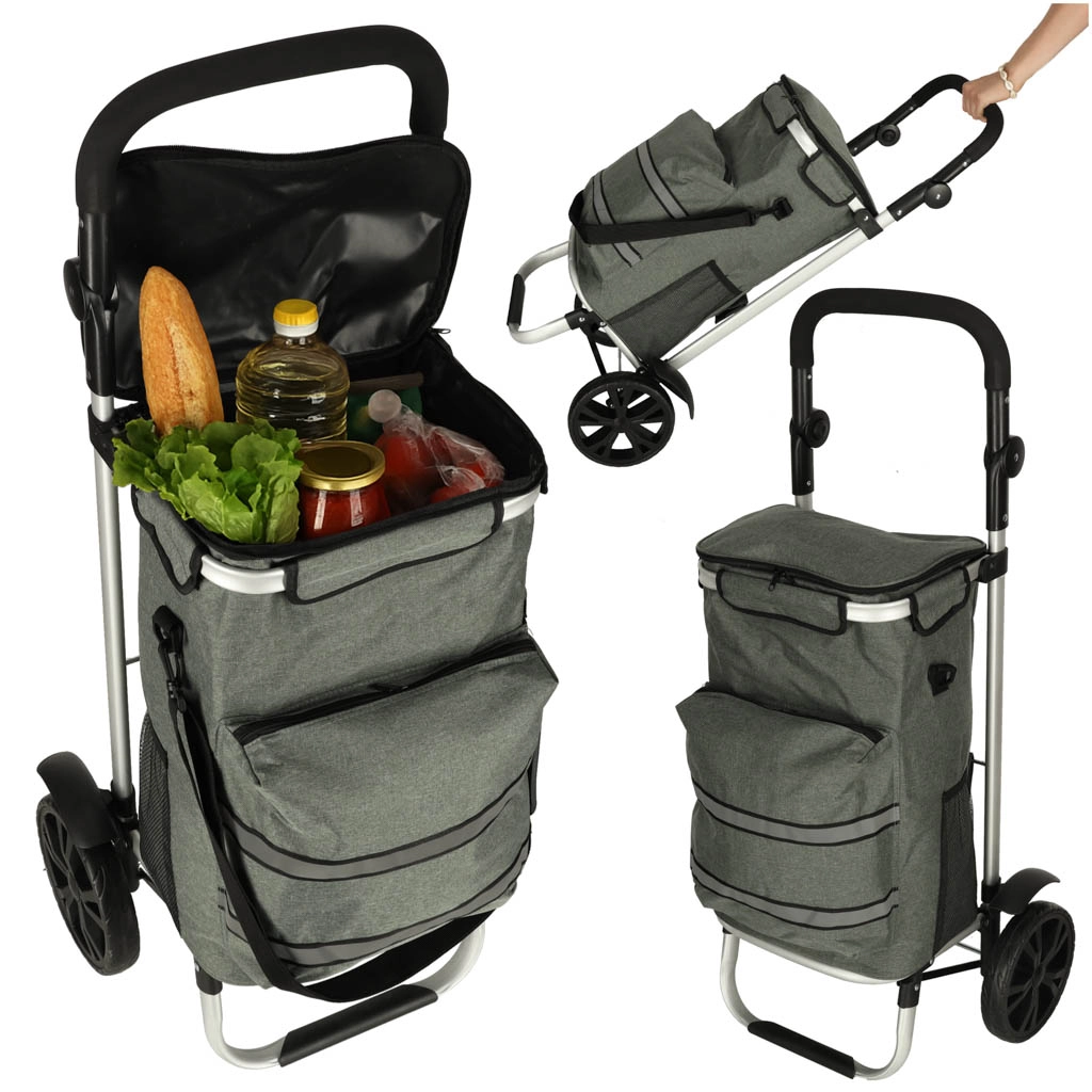 Le chariot dispose d’un intérieur spacieux de 40 litres et est équipé d’une poche isotherme pour le stockage d’aliments réfrigérés. Grâce à la poignée ergonomique et aux grandes roues, le chariot est facile à manœuvrer.
