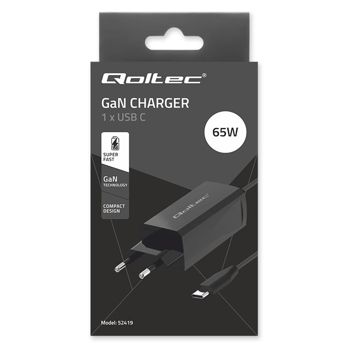 Le chargeur Qoltec utilise une technologie GaN (nitrure de gallium) avancée, plus performante que le silicium traditionnel en termes d’efficacité énergétique. Il offre une puissance maximale avec des pertes thermiques minimales.