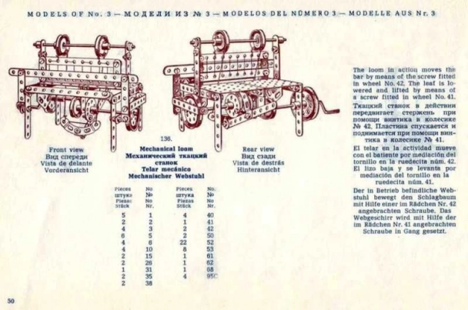 Un grand livret d'instructions de 94 pages, au style d'époque, avec des étapes illustrées, est inclus. Les instructions sont complétées par des textes originaux en anglais, allemand, espagnol et russe et sont conçues pour les ensembles MERKUR classic C03, C04 et C05.
