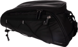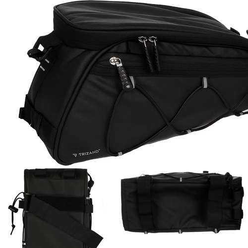 La fixation sûre au porte-bagages est assurée par des bandes velcro et des mousquetons, créant une structure stable et solidaire. Des éléments réfléchissants supplémentaires améliorent la visibilité la nuit, garantissant votre sécurité.