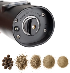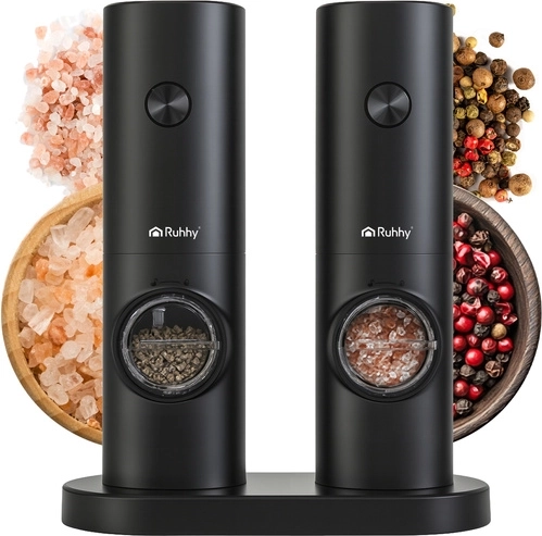 Les moulins à poivre et à sel électriques de la marque RUHHY sont un complément idéal pour ceux qui apprécient la qualité et l'esthétique. Utilisation universelle permet leur utilisation pour différents types d'épices, y compris les herbes. Le broyage est assuré par un mécanisme en céramique, qui est durable et précis sans arrière-goût métallique.