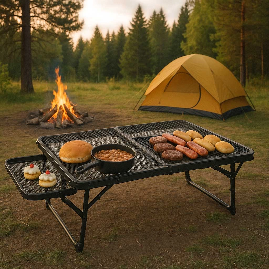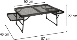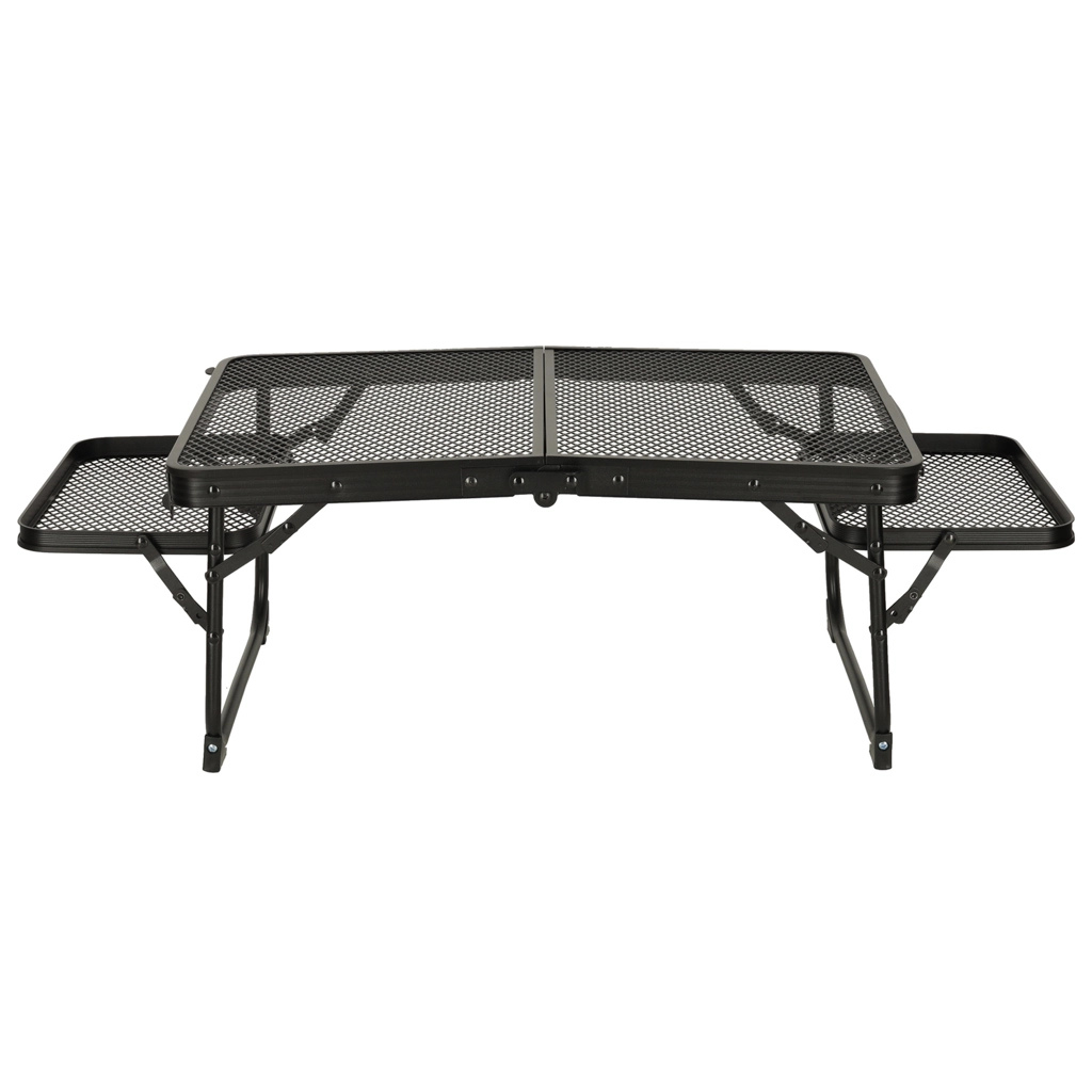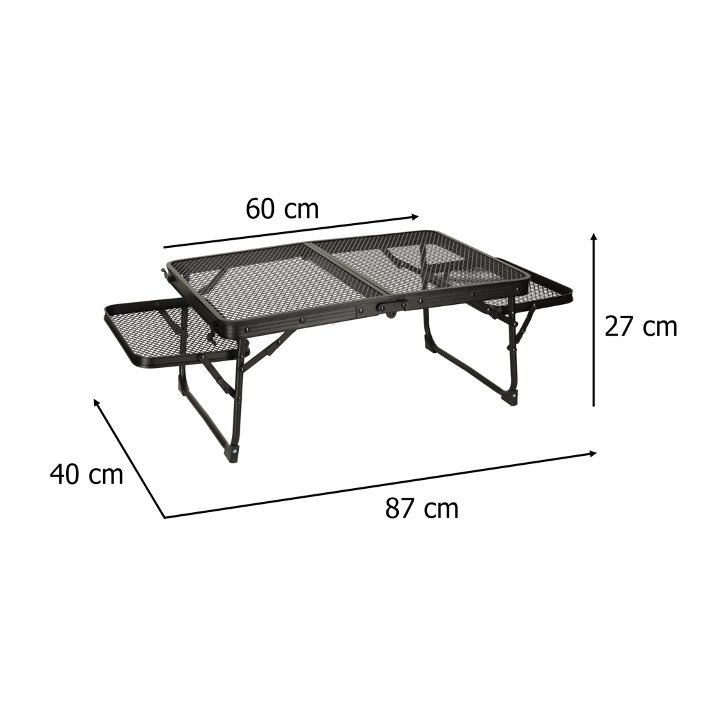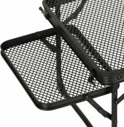 La structure en aluminium avec un plateau en grille métallique assure légèreté, durabilité et résistance à la rouille. La table est conçue pour une utilisation à long terme même dans des conditions extérieures difficiles.