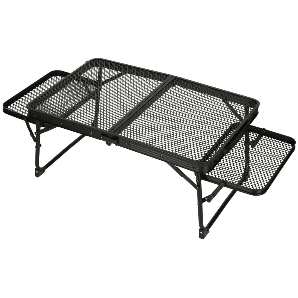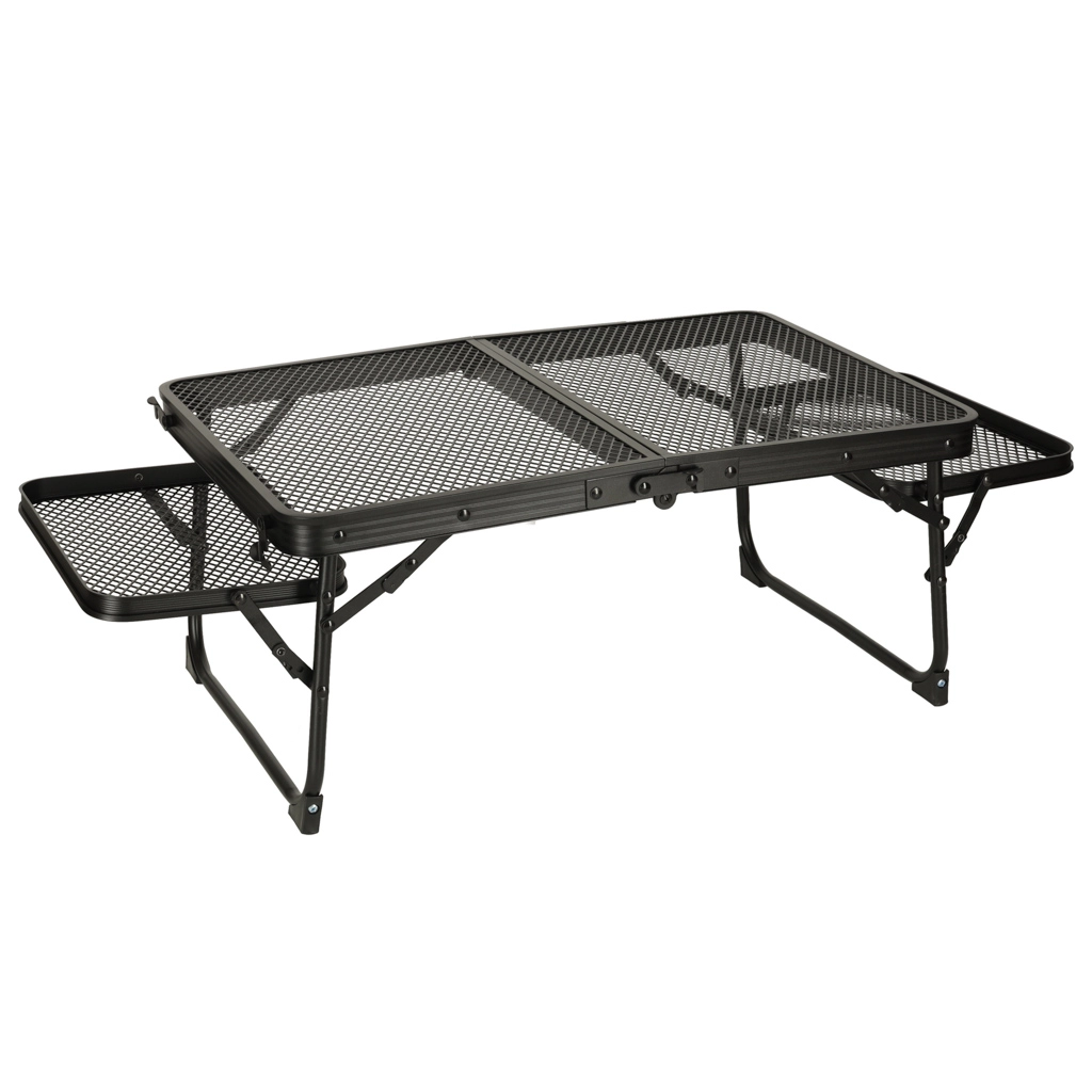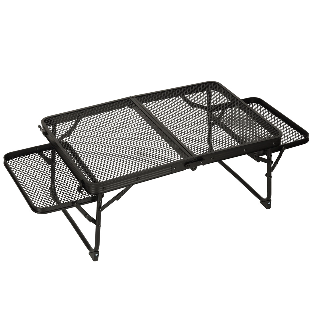 Cette table de camping pliante est idéale pour ceux qui recherchent une solution multifonctionnelle et pratique pour les activités en extérieur. Fabriquée avec une structure en aluminium, la table est résistante à la rouille et son plateau en grille métallique offre une excellente ventilation et durabilité. Grâce à son faible poids, vous pouvez la transporter et la ranger facilement, ce qui est parfait pour une utilisation en camping, pique-nique ou même dans le jardin.