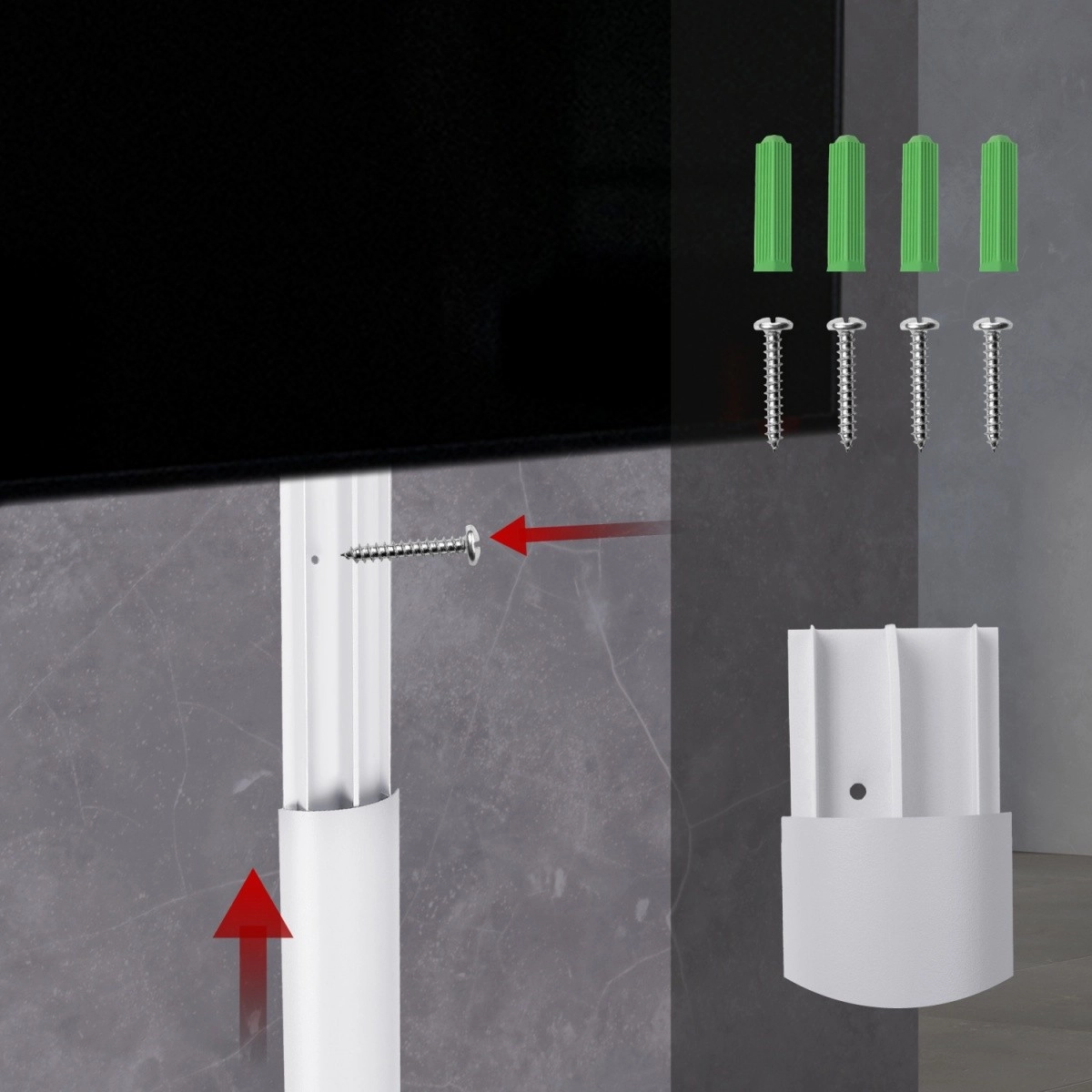 La goulotte est composée de deux éléments – une base de montage et un couvercle – ce qui permet un accès rapide et facile aux câbles pour leur remplacement ou leur maintenance. Les options d’installation incluent un ruban adhésif pour une fixation rapide et simple sur des surfaces lisses, ou l’utilisation de vis et chevilles d’ancrage pour une plus grande stabilité.