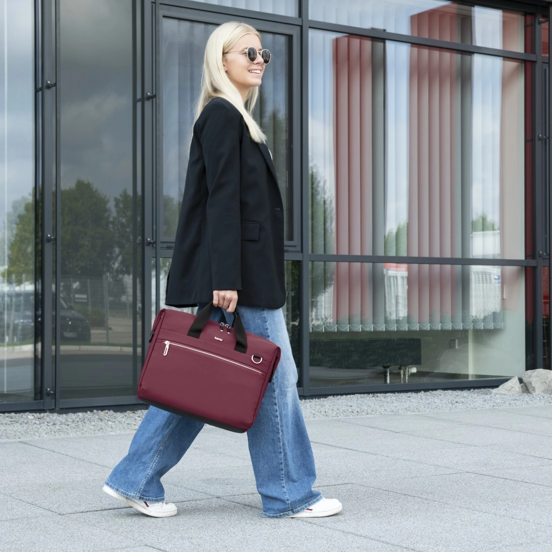 La sacoche Hama Ultimate rouge, élégante et fonctionnelle pour ordinateurs portables de 15,6 à 16,2 pouces est idéale en toute situation, que ce soit pour le travail, les déplacements professionnels ou les trajets quotidiens entre les réunions.