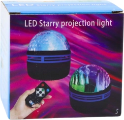 Le projecteur LED étoiles avec télécommande offre une lumière LED RGB colorée avec de nombreuses combinaisons de couleurs et de modes de fonctionnement. Il permet l’allumage et l’extinction, le changement de couleurs, l’activation d’un mode où le projecteur réagit aux sons ambiants, ainsi que le réglage de la vitesse de rotation du moteur.