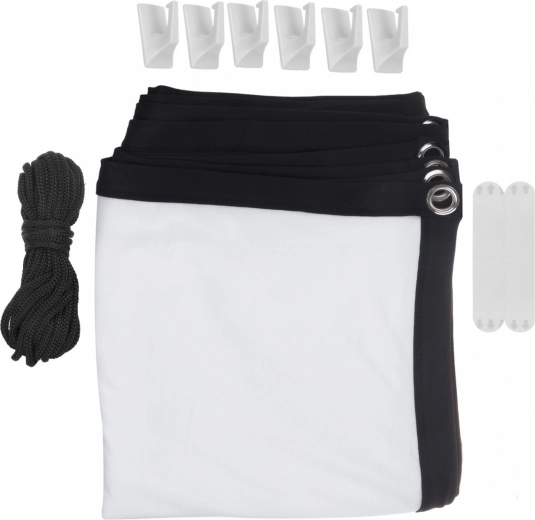 Le montage mural est facile grâce aux crochets fournis et au ruban adhésif. L'écran peut être facilement retiré et déplacé ailleurs. Un câble pour la fixation est également inclus dans l'emballage.