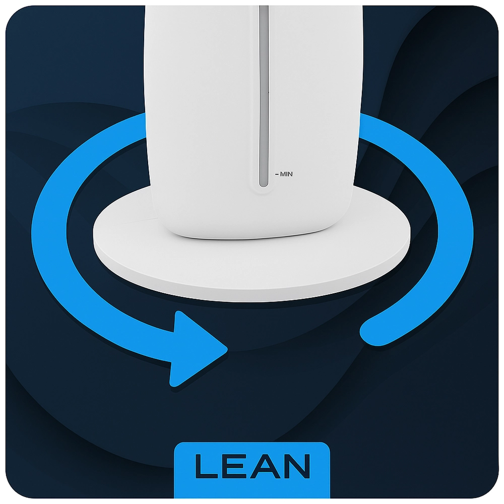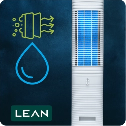Nous présentons le ventilateur colonne LEAN, conçu pour offrir un maximum de confort pendant les journées chaudes grâce à la technologie de refroidissement par eau. Il suffit de verser de l’eau et d’ajouter de la glace pour un meilleur effet. La fonction ionisation purifie en plus l’air des allergènes et des micro-organismes.