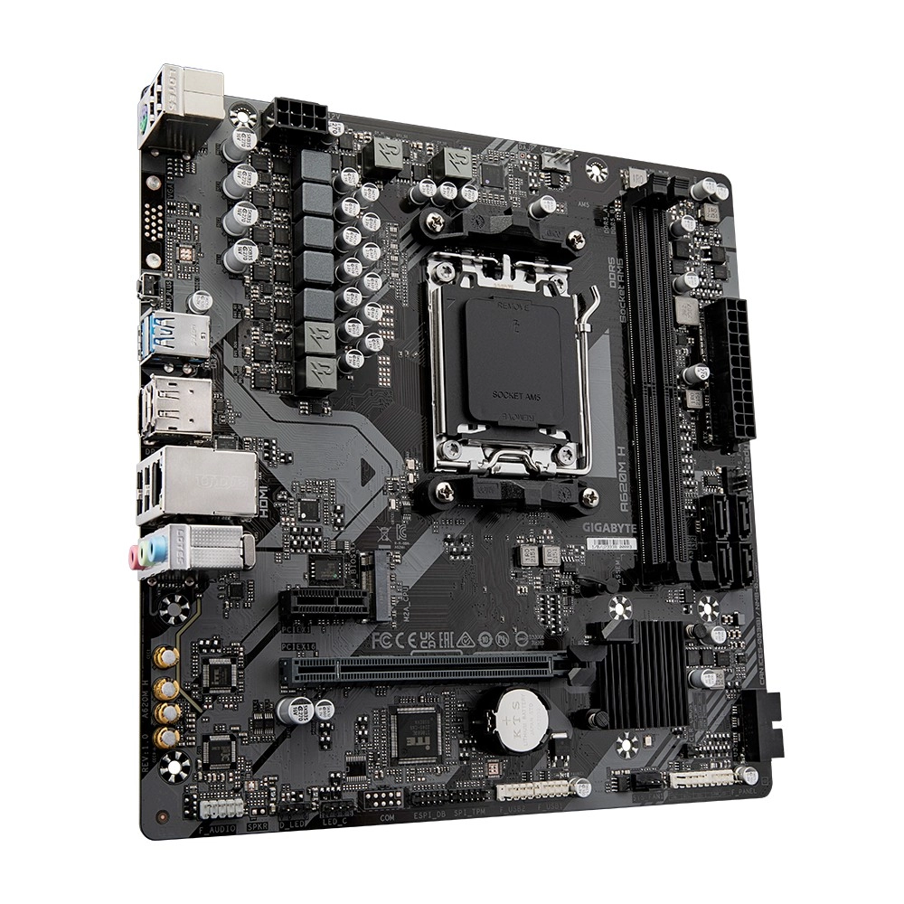 Assemblez un ordinateur performant avec la Gigabyte A620M H, qui intègre la toute dernière technologie AMD Ryzen. La carte mère prend en charge les processeurs AMD Ryzen série 7000 et propose une mémoire DDR5 double canal, offrant une bande passante supérieure et une gestion de mémoire plus efficace. Grâce aux emplacements M.2 PCIe 4.0 x4, vous pouvez exploiter un stockage ultra-rapide pour des chargements plus rapides.