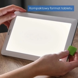 Un design compact et pratique au format tablette (15,6 x 23,6 cm) fait de cette lampe un compagnon idéal au quotidien – à la maison, au bureau ou en voyage. Une fois branchée, elle fournit une dose supplémentaire de lumière du jour à tout moment.