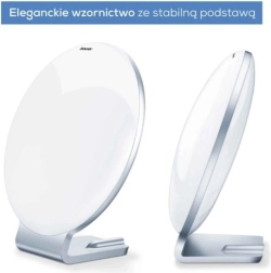 Les lampes de la marque Beurer fournissant une lumière du jour aident à compenser le manque de lumière pendant les mois d’hiver et améliorent l’humeur grâce à une intensité de 10 000 lux à une distance d’environ 15 cm.