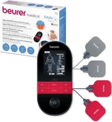 L’appareil Beurer EM 59 permet la stimulation électrique transcutanée des nerfs (TENS) pour un soulagement de la douleur sans médicaments, la stimulation électrique des muscles (EMS) pour l’entraînement et la récupération musculaires, une fonction de massage et un programme de chauffage.