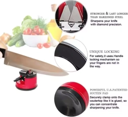 L'aiguiseur est équipé d'une meule en carbure de tungstène pour un affûtage rapide et précis des couteaux, ciseaux et autres outils simples. Sa taille compacte est idéale pour n'importe quel tiroir, mais il est aussi léger et durable, ce qui le rend parfait pour une utilisation en déplacement, comme le camping, la pêche ou le jardinage.