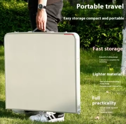 La structure pliante de la table et des chaises permet un rangement compact sous forme d'une valise pratique avec poignée, ce qui facilite le transport et le stockage. C'est particulièrement pratique lors des excursions, où chaque centimètre d'espace dans le coffre est précieux.