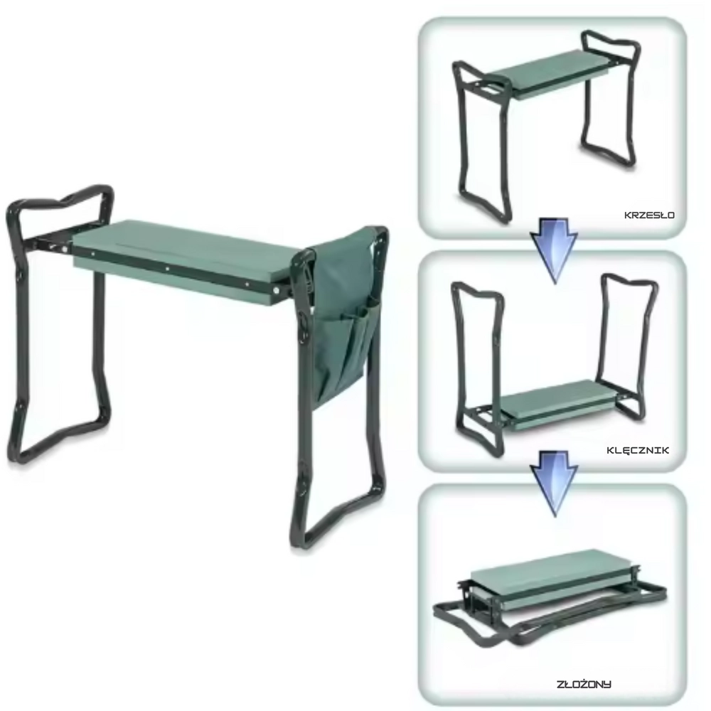 Tabouret et agenouilloir de jardin pliable 3 en 1 avec organisateur