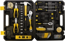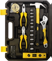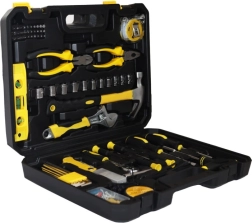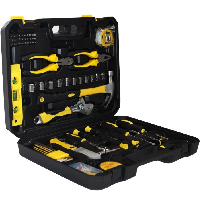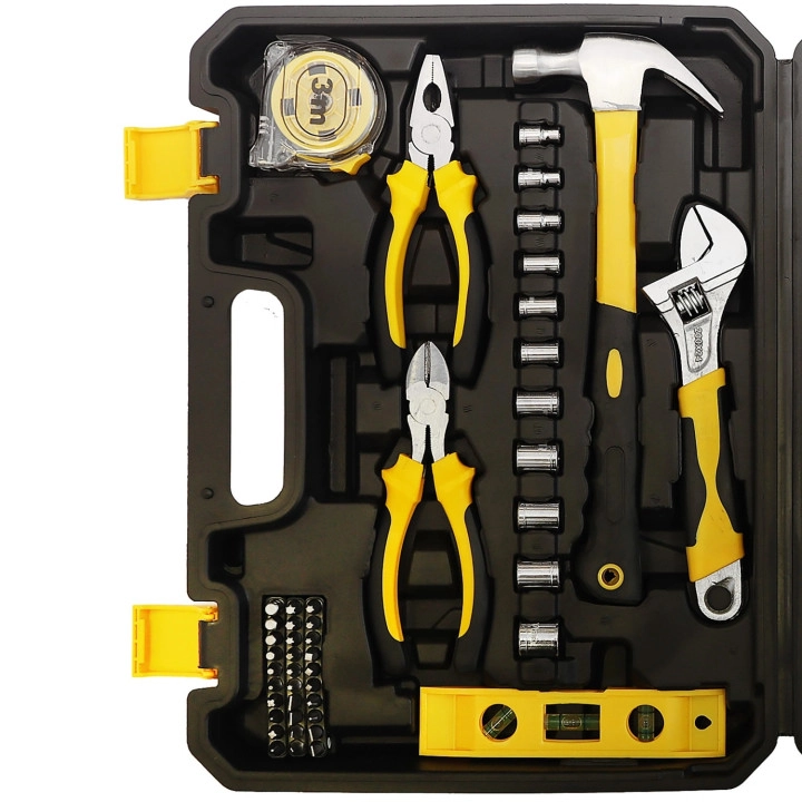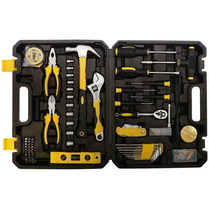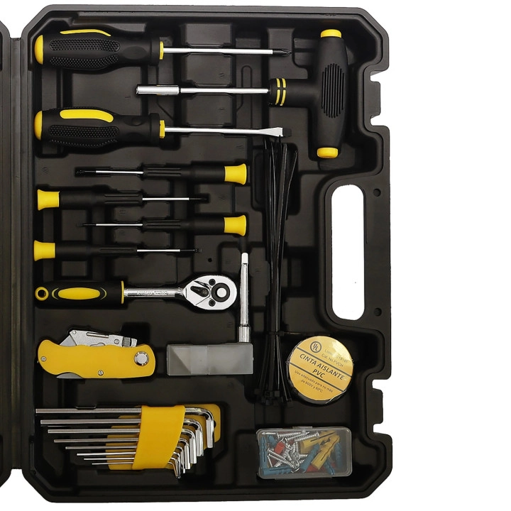 Ce kit contient tout le nécessaire pour des tâches quotidiennes telles que le montage de meubles, les réparations de vélos, le remplacement de prises ou l'accrochage de tableaux. Rangée dans une mallette solide avec des compartiments moulés, elle assure une organisation facile et un transport sécurisé. Les outils fabriqués en acier au carbone et chrome-vanadium garantissent une longue durée de vie et une fiabilité sur de nombreuses années.