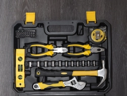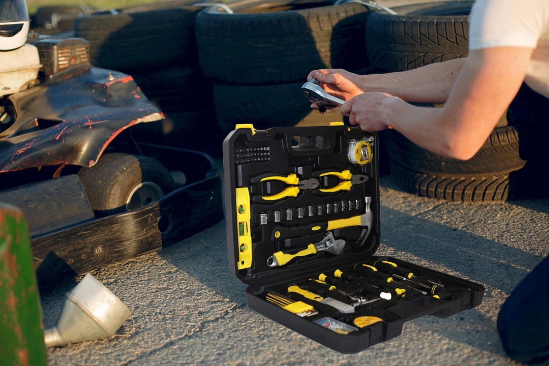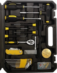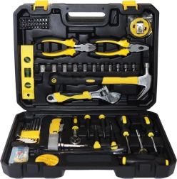 L'ensemble comprend différents tournevis, cliquets, clés et autres outils essentiels pour les tâches domestiques et d'atelier. Il est idéal pour les bricoleurs et assure que vous ayez toujours le bon outil à portée de main.