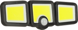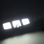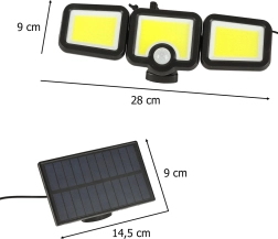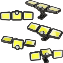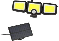 Projecteur LED solaire d’extérieur puissant avec trois panneaux orientables, panneau solaire séparé et capteur PIR intégré. Offre un large angle d’éclairage jusqu’à 320°, un allumage automatique au crépuscule et un fonctionnement économe à l’énergie solaire. Idéal pour éclairer la cour, le jardin, l’entrée ou l’allée et pour renforcer la sécurité après la tombée de la nuit.