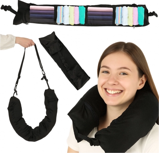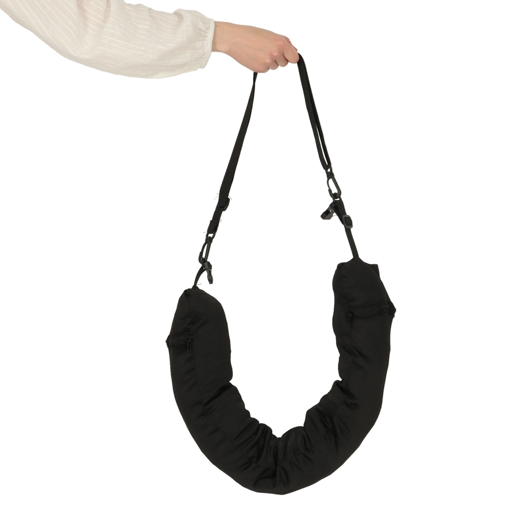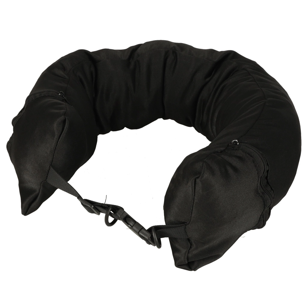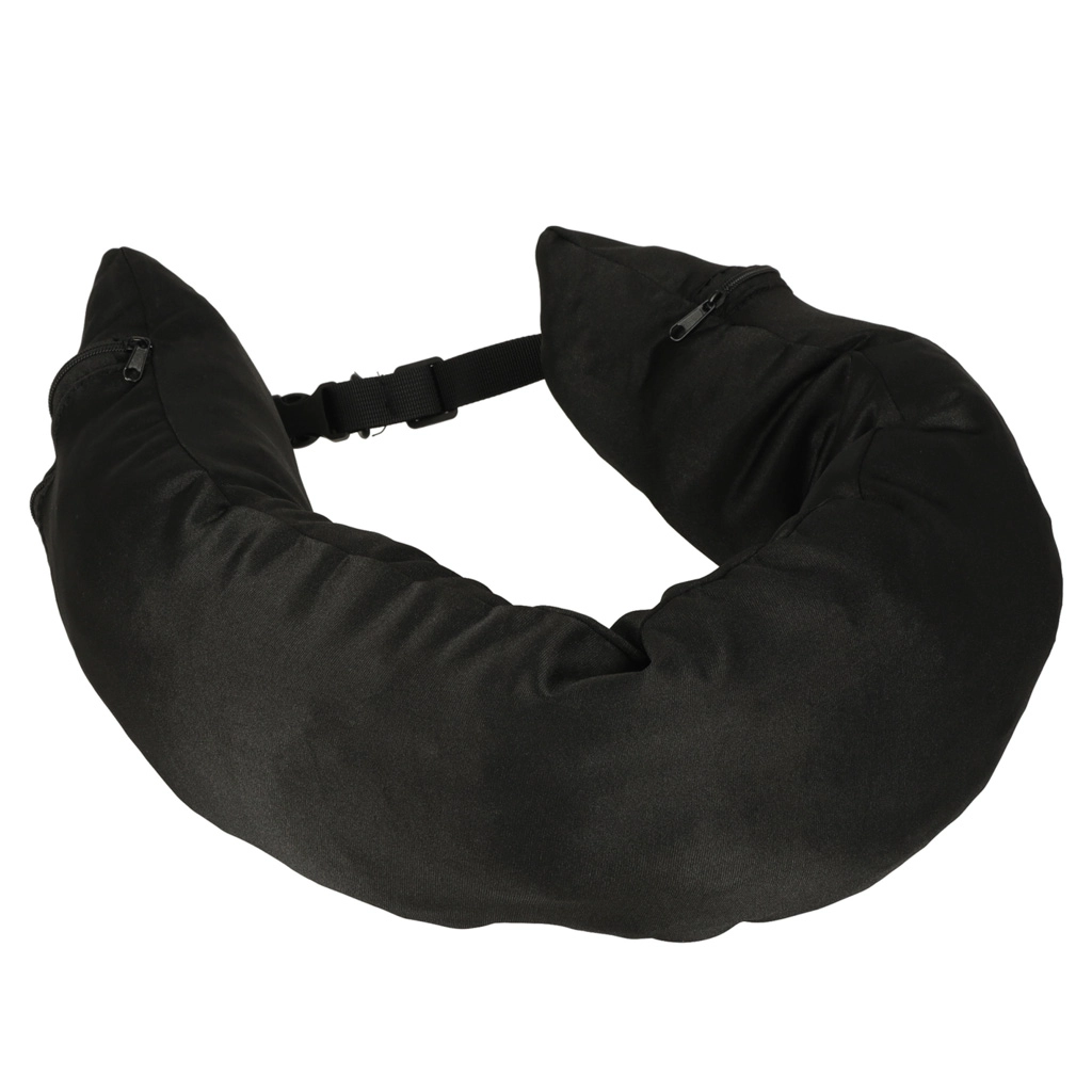 Ce coussin de voyage est un compagnon idéal pour vos déplacements. Il est doté d'une fermeture avant en forme de boucle, assurant stabilité et confort lors de l'utilisation. Une grande poche intérieure offre une solution de rangement pratique pour vos effets personnels. Deux zips latéraux permettent un accès facile des deux côtés, rejoignant les poches gauche et droite à l'intérieur.