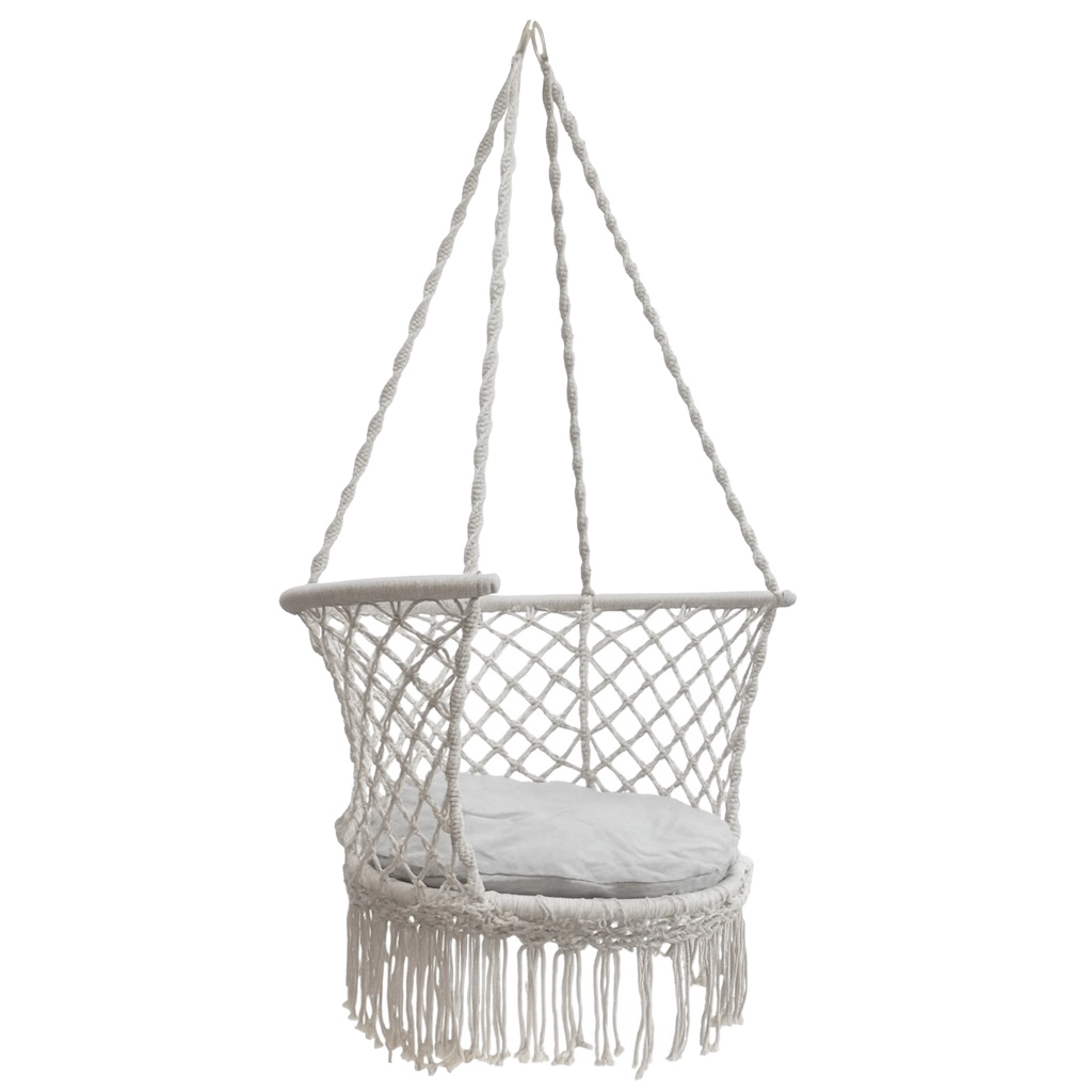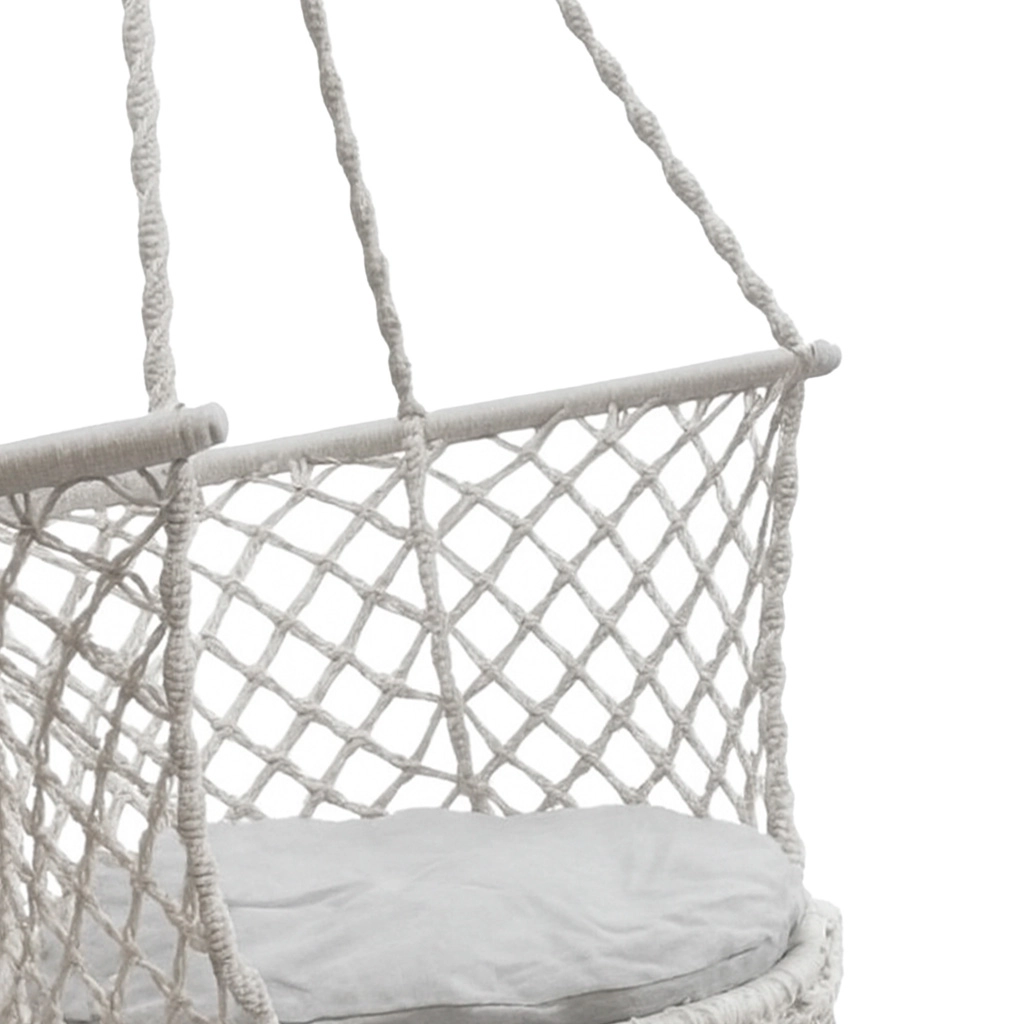 Le siège suspendu gris en forme de nid transformera votre coin jardin en un lieu paisible de repos. Grâce au coussin inclus, vous pouvez confortablement appuyer votre dos contre l'anneau en métal. La balancelle est stable et permet de s'asseoir droite ou confortablement en position en tailleur.